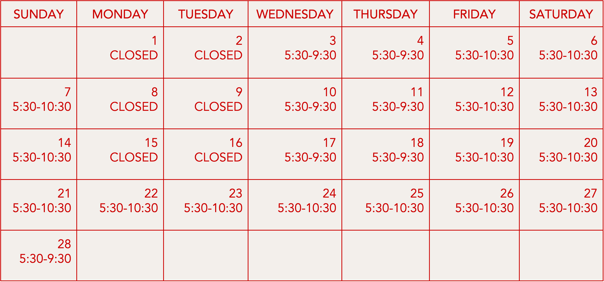 Hours of Operation