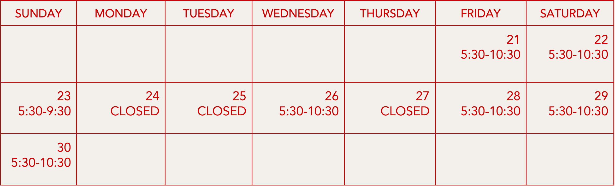 NOV 21 – DEC 28